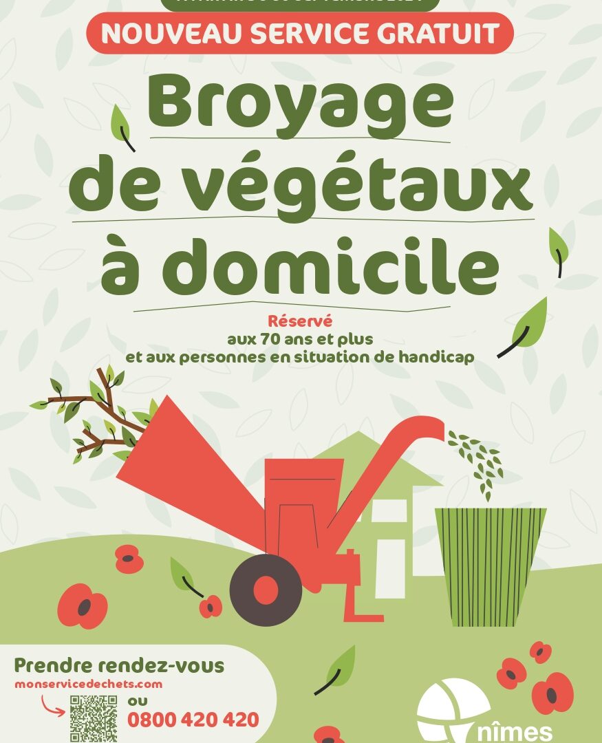 Avec l’arrivée des beaux jours, il nous parait nécessaire de rappeler à nos concitoyens de l’existence du service de broyage à domicile proposé par Nîmes Métropole.