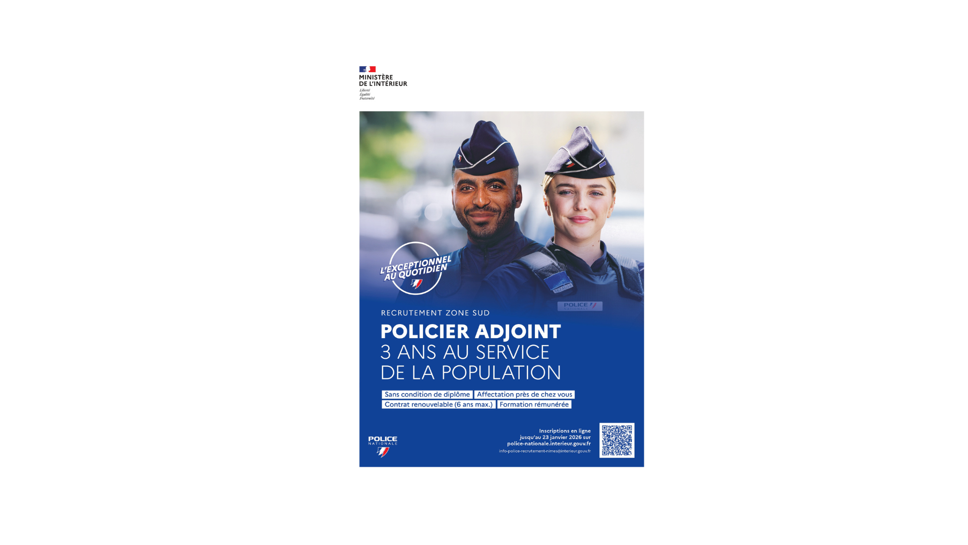 Ouverture de la campagne de recrutement de policier adjoint 1ère session 2026 du 22/12/2025 au 23/01/2026 en zone Sud