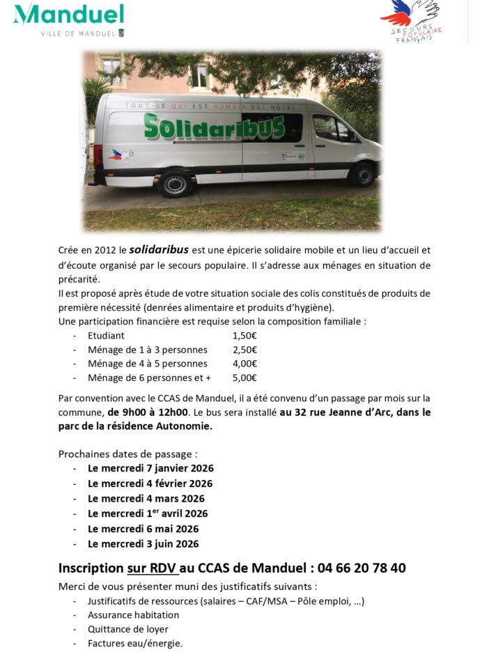 Planning du solidaribus 1er semestre 2026