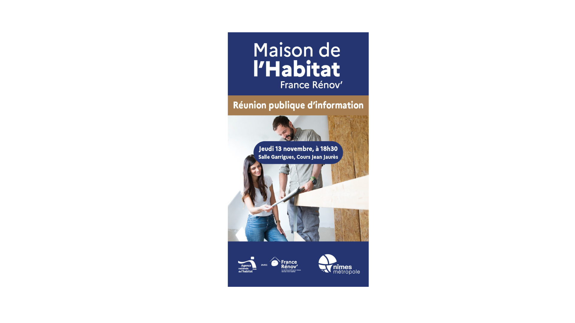 Retour aux événements Réunion publique d’information Maison de l’habitat – 13 novembre 2025Le 18/11/2025 à partir de 18h30 + Ajouter au calendrierRécapitulatif Date et heureLe 18/11/2025 à partir de 18h30Lieu Cours Jean Jaurès 30129 Manduel Pour afficher ce contenuvous devez accepter les cookies Publicitaires.Comment s'y rendre Partager Le lien à bien été copié