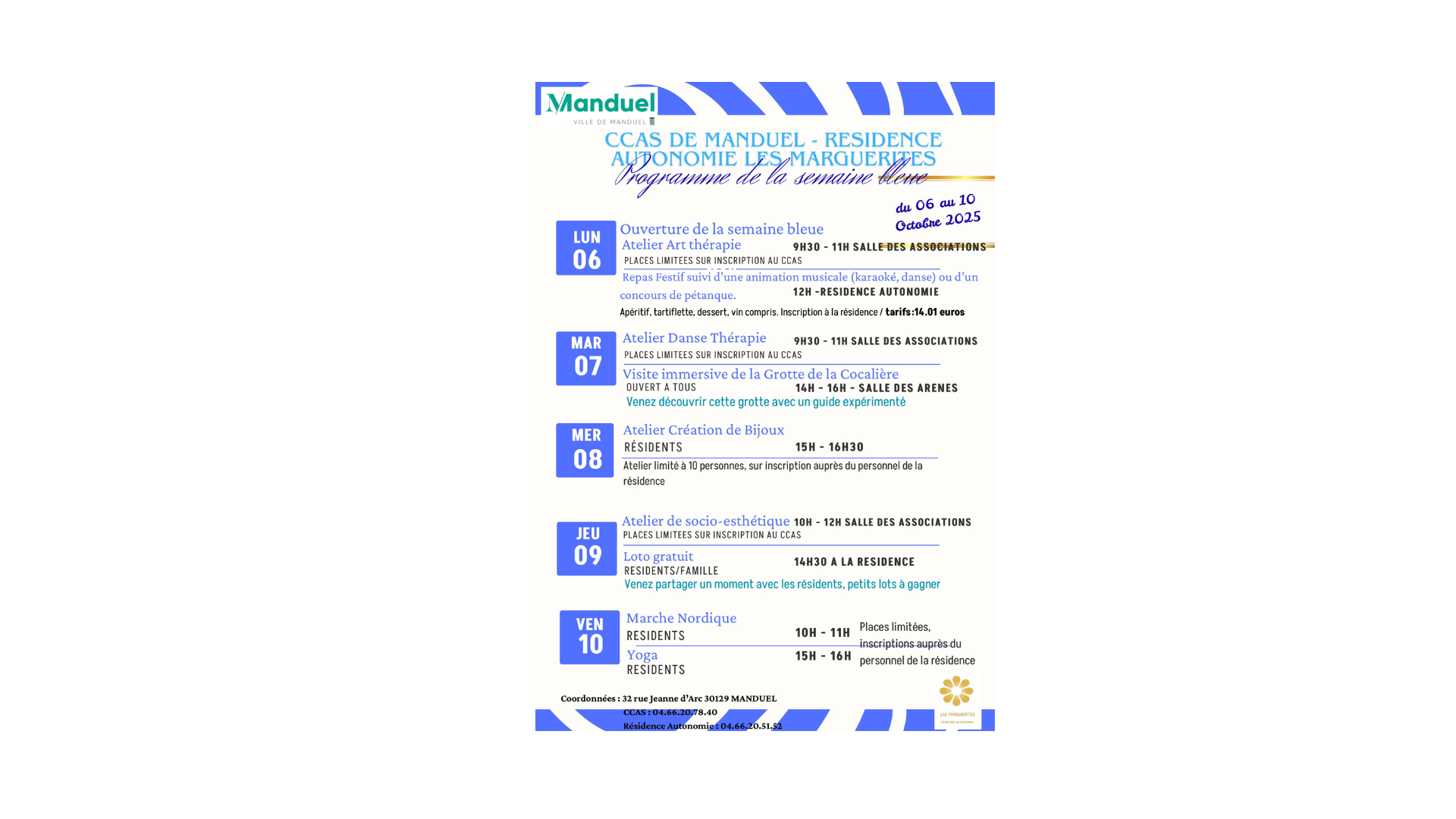 Retour aux événements Semaine bleue du 6 au 10 octobre 2025 (10/10)Le 10/10/2025 + Ajouter au calendrierRécapitulatif Date et heureLe 10/10/2025 Partager Le lien à bien été copié
